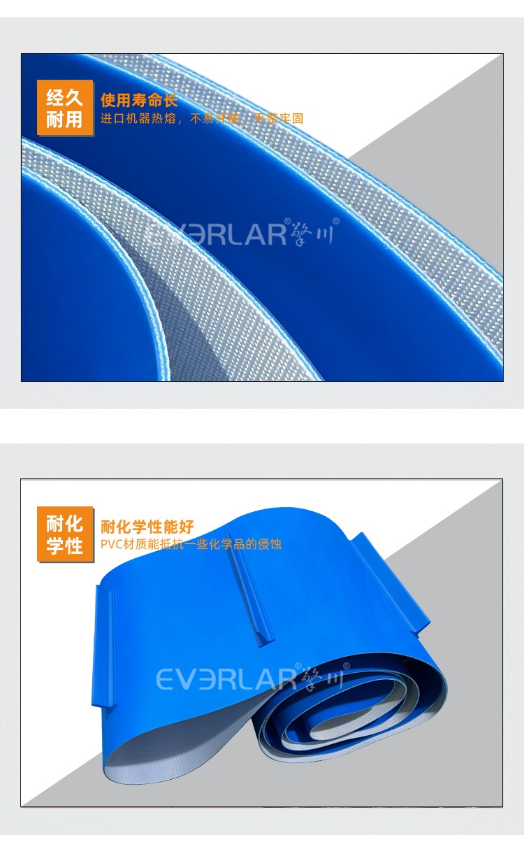 耐磨、耐酸堿、抗腐蝕、表面光滑、柔韌性好、防跑偏、防掉落